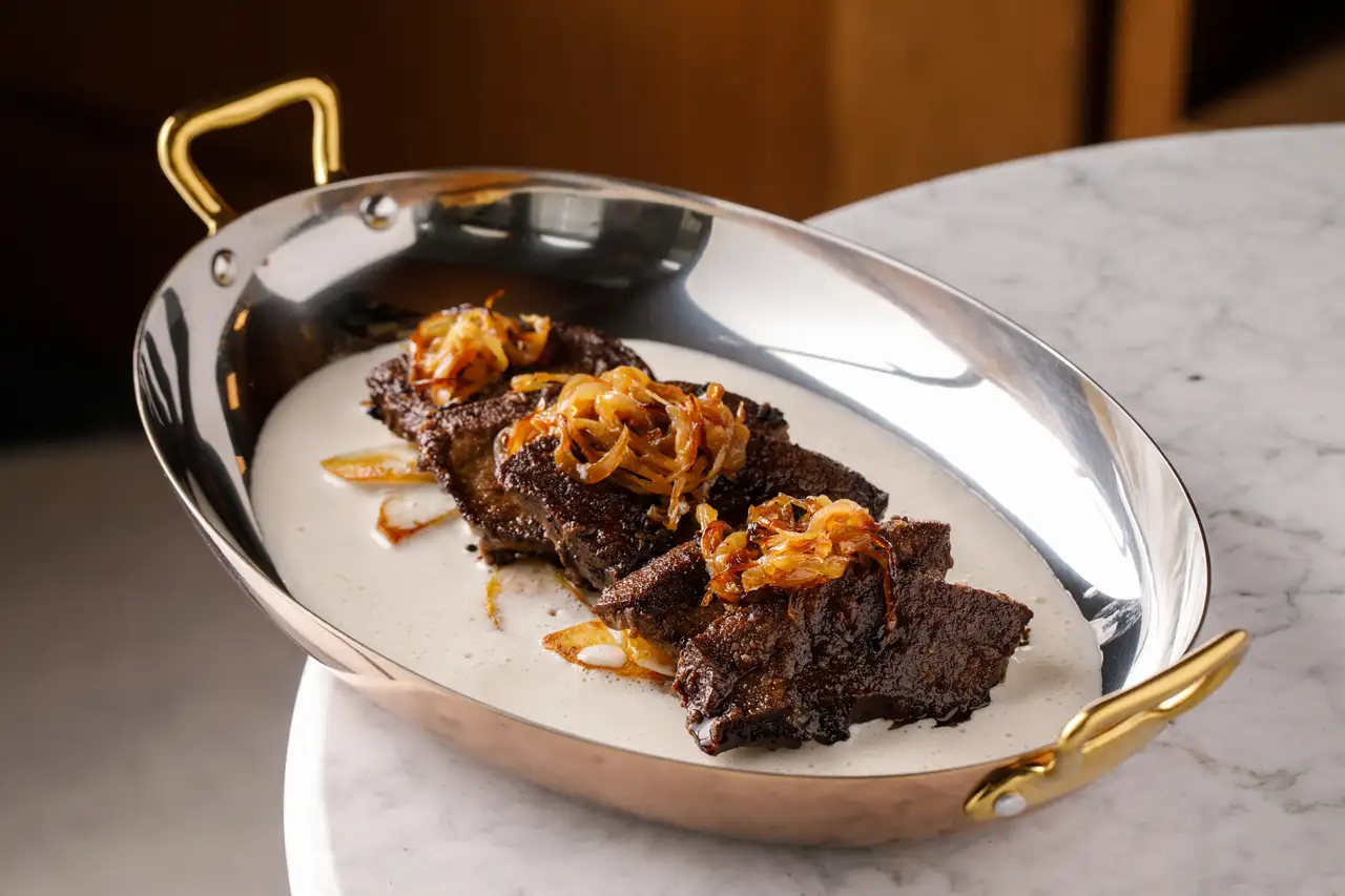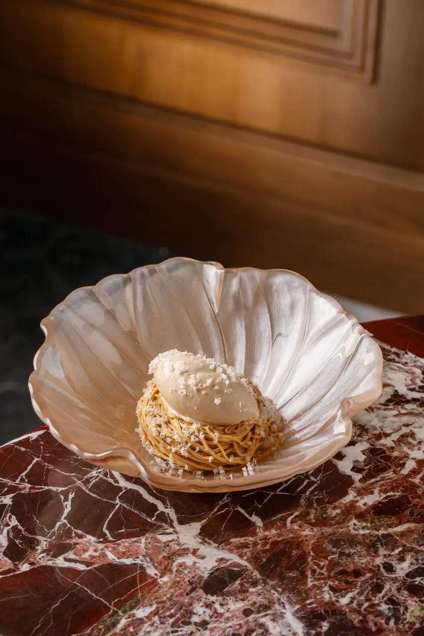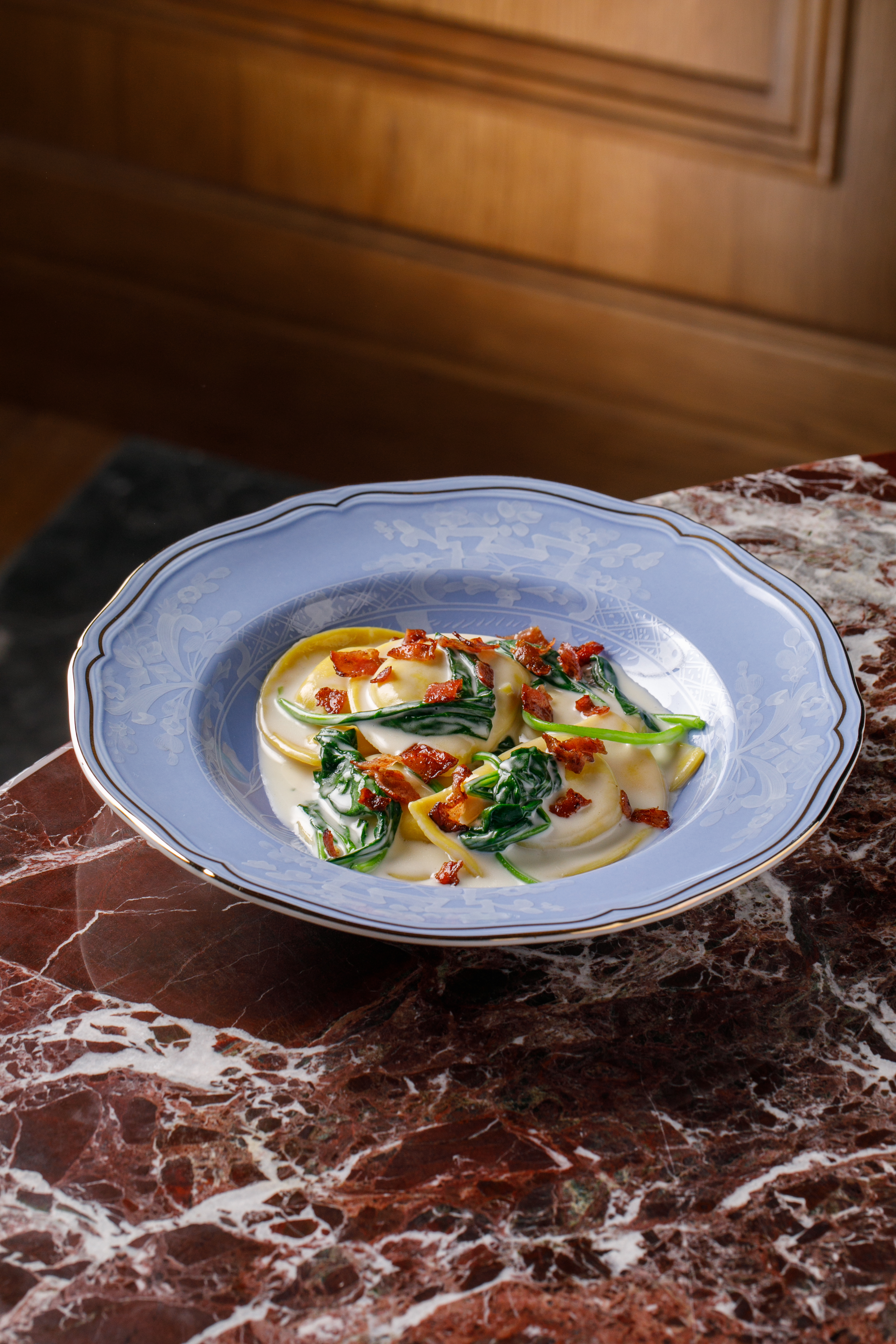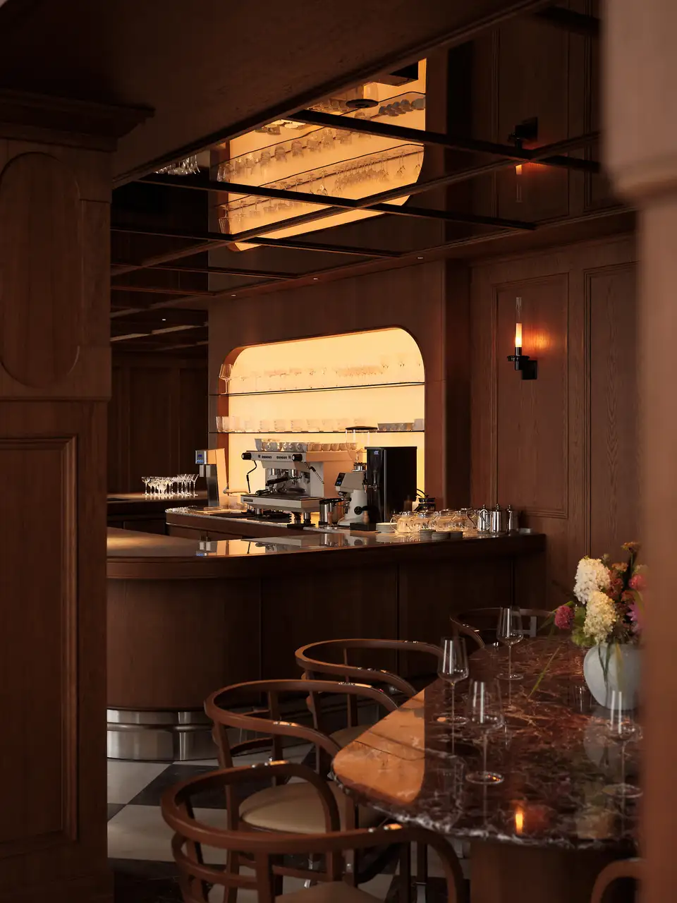 Над оформлением работала студия APAA Алексея Пенюка и Анастасии Артемьевой, постоянное архитектурное бюро заведений Дмитрия Блинова. В интерьере высокие потолки арками, много света, минимум декоративного шума и, как всегда, открытая кухня и современное искусство.